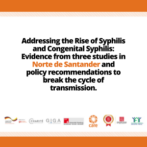 The increase in syphilis, particularly congenital syphilis, poses a public health threat in Colombia. However, there is a curative treatment in the form of penicillin (one to three doses), which is low-cost; the challenges are early detection, diagnosis, and timely treatment in a context of high vulnerability and mobility. This document summarizes the results of three studies we completed, along with a pilot health services project implemented by CARE Colombia, within the COL-VAC-SIF project (through Charité and managed by the German Institute for Global and Area Studies) and funded by the Deutsche Gesellschaft für Internationale Zusammenarbeit (GIZ) in Norte de Santander, from March to August 2023.