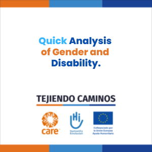 This publication contains key information on the impact of the Tejiendo Caminos project, implemented by CARE Colombia and Humanity & Inclusion and funded by ECHO, in the departments of Cauca, Nariño and Norte de Santander. los departamentos de Cauca, Nariño y Norte de Santander.