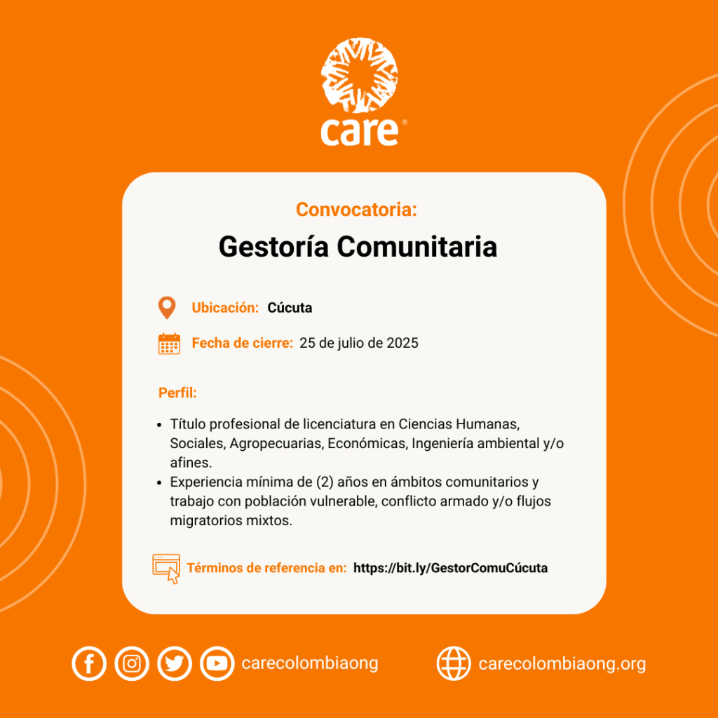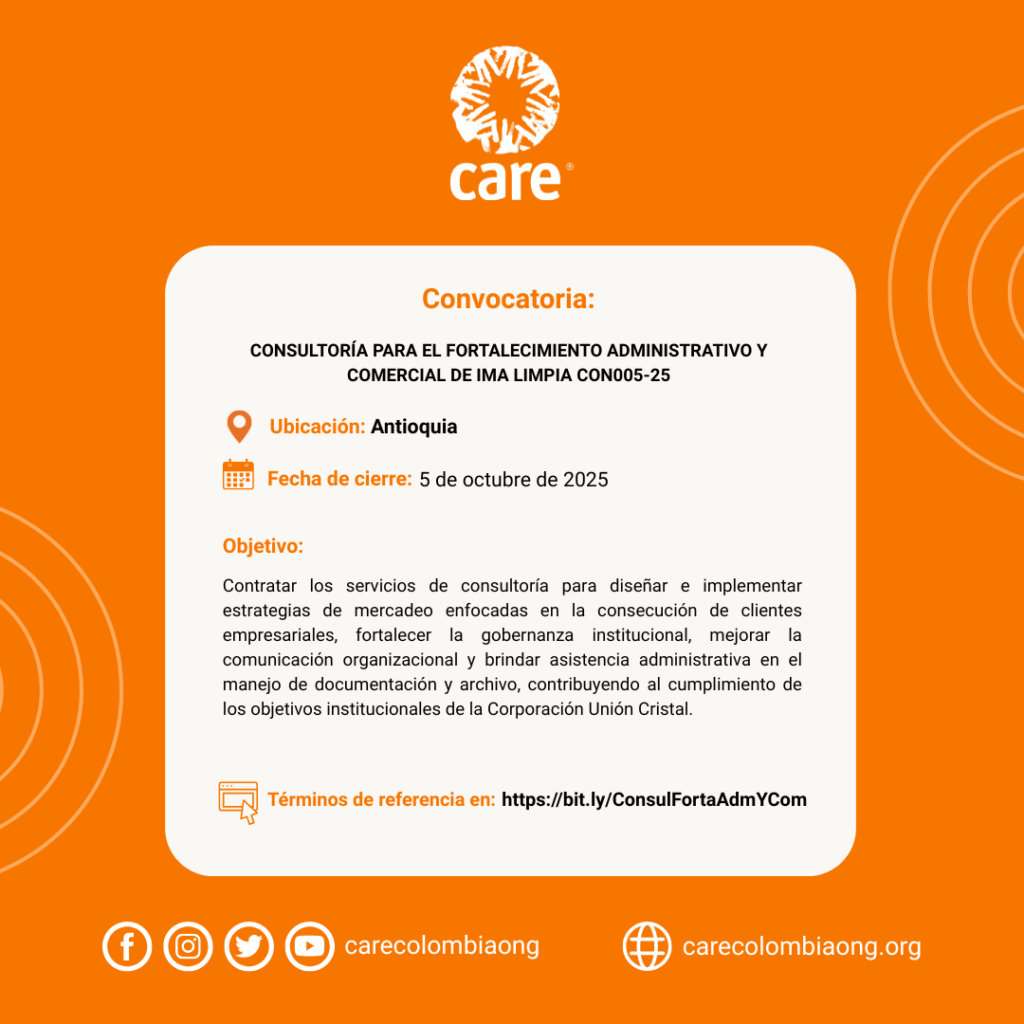 CARE works worldwide to save lives, defeat poverty, and achieve social justice. We seek a world of hope, inclusion, and social justice, where poverty has been overcome and all people live with dignity and security.